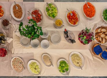 La prima colazione, assortita di un’ampia scelta, è servita a buffet in terrazza.